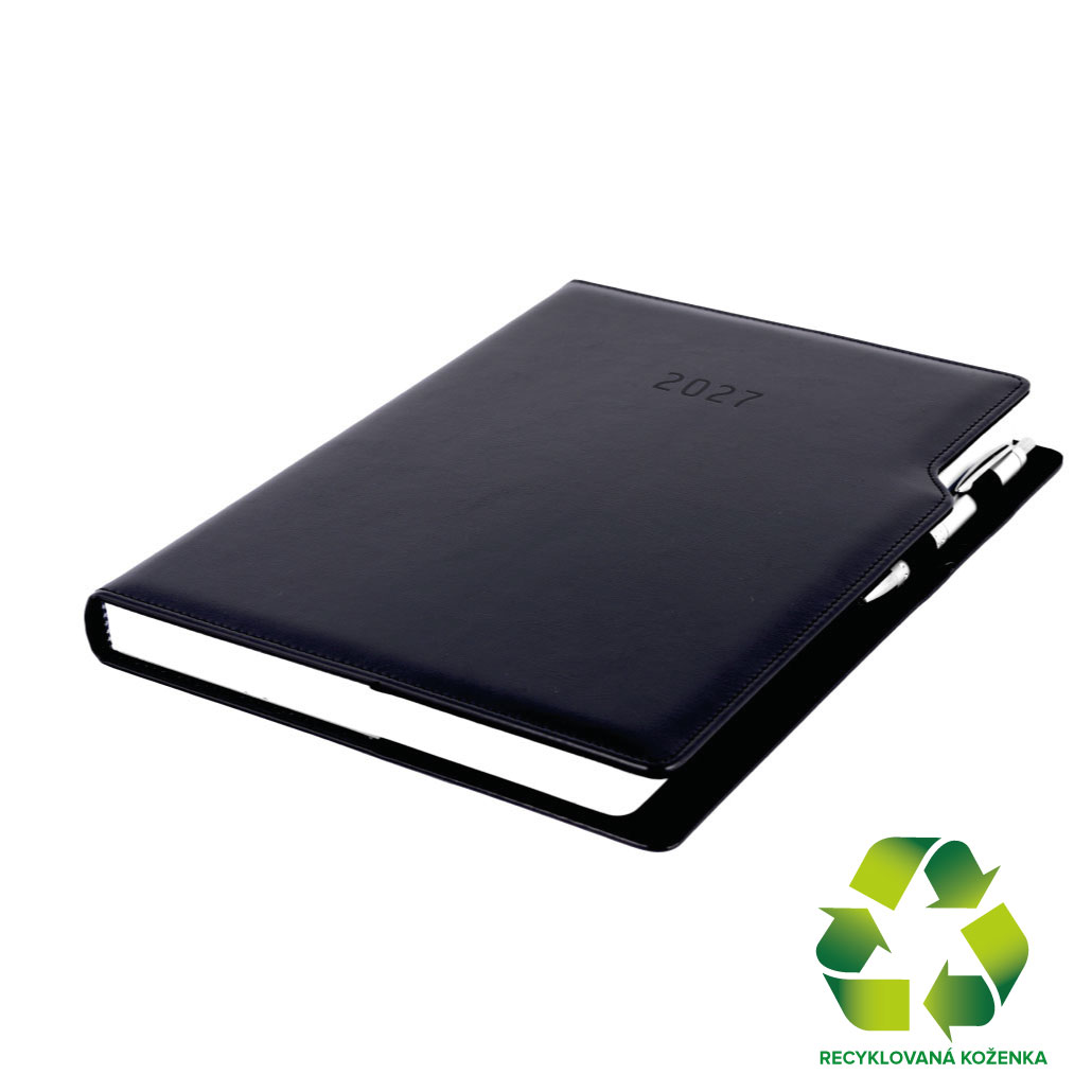 Diár GEP s perom denný A4 2027 - čierna/čierne vnútro - recyklovaná koženka