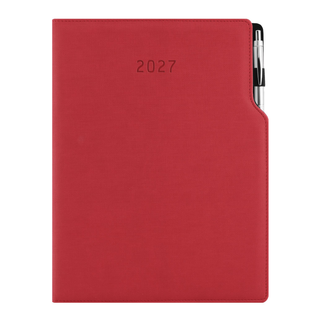 Diár GEP s perom denný A4 2027 polský - červená pastelová