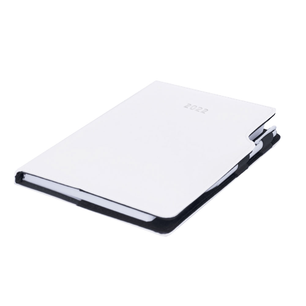 Diár GEP s perom denný A5 2022 polský - biela, čierne obšitie