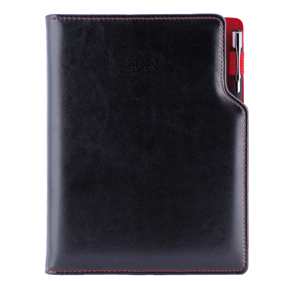 Diár GEP s perom denný A5 2023 polský - čierna, červené vnútro
