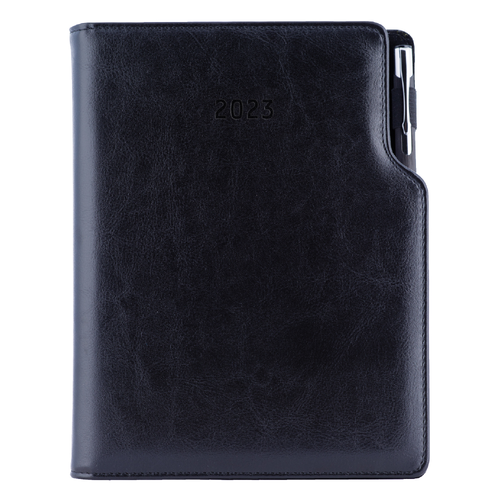 Diár GEP s perom denný A5 2023 polský - čierna, čierné vnútro
