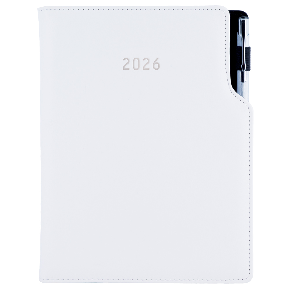 Diár GEP s perom denný A5 2026 slovenský - biela/ biele obšitie