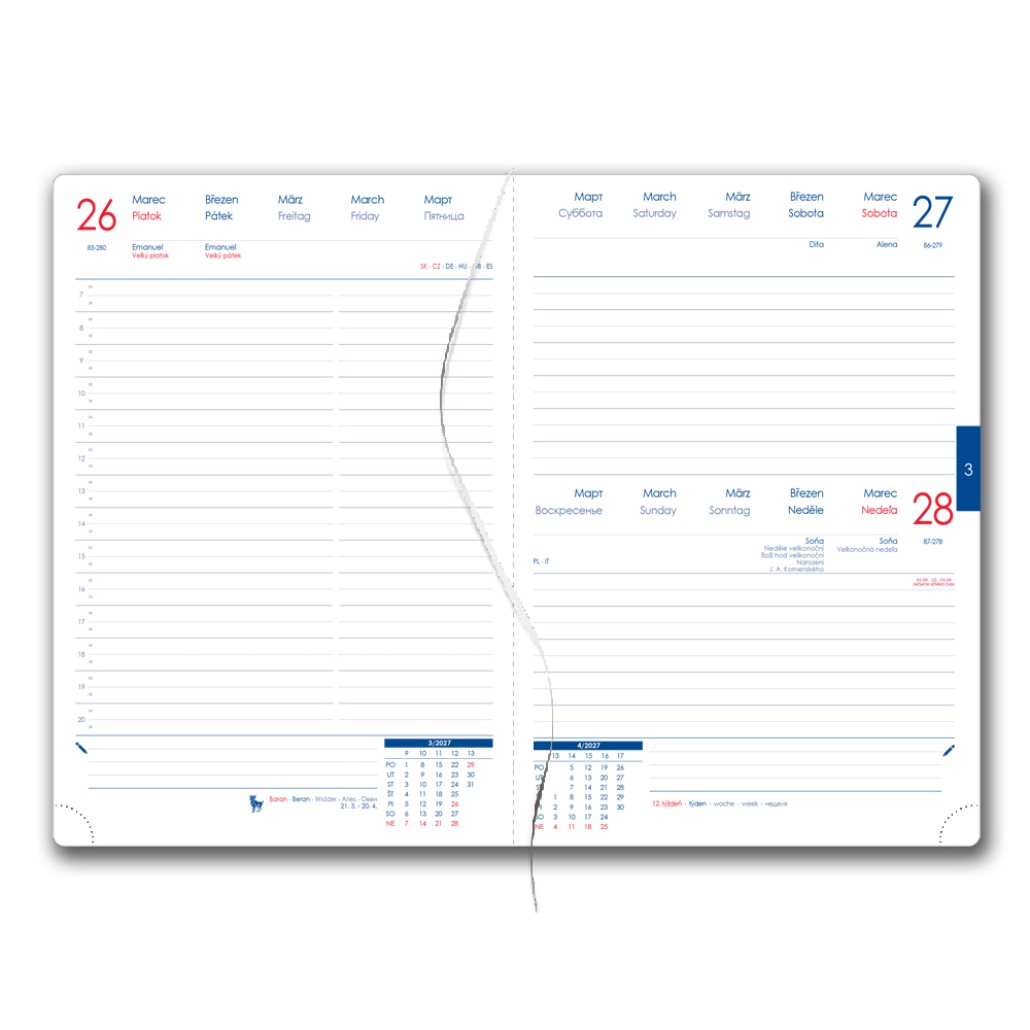 Obsah kalendária: znamenia zverokruhu, prehľadný kalendár, plánovací kalendár 2027,
