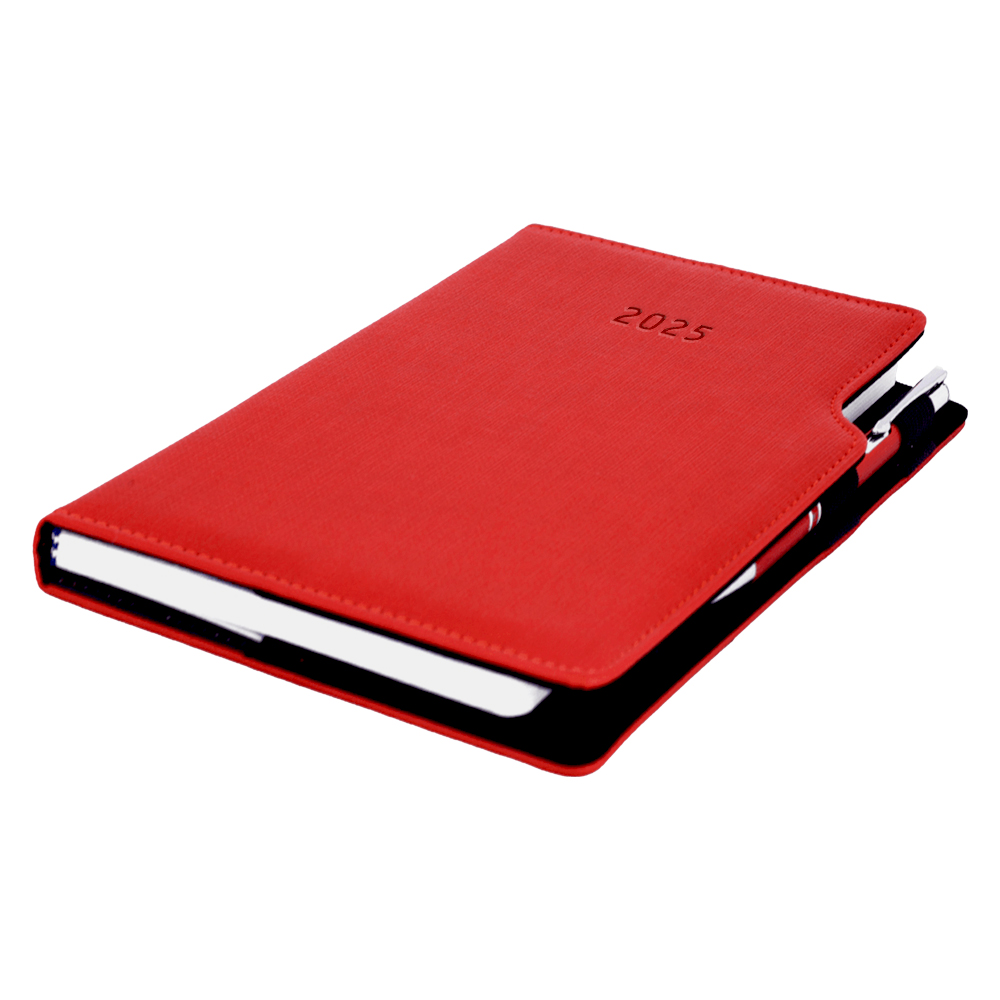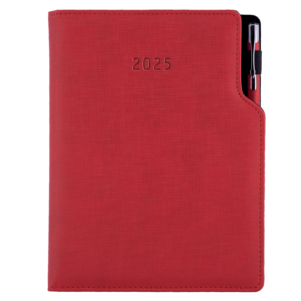 Diár GEP s perom denný B6 2025 polský - červená pastelová