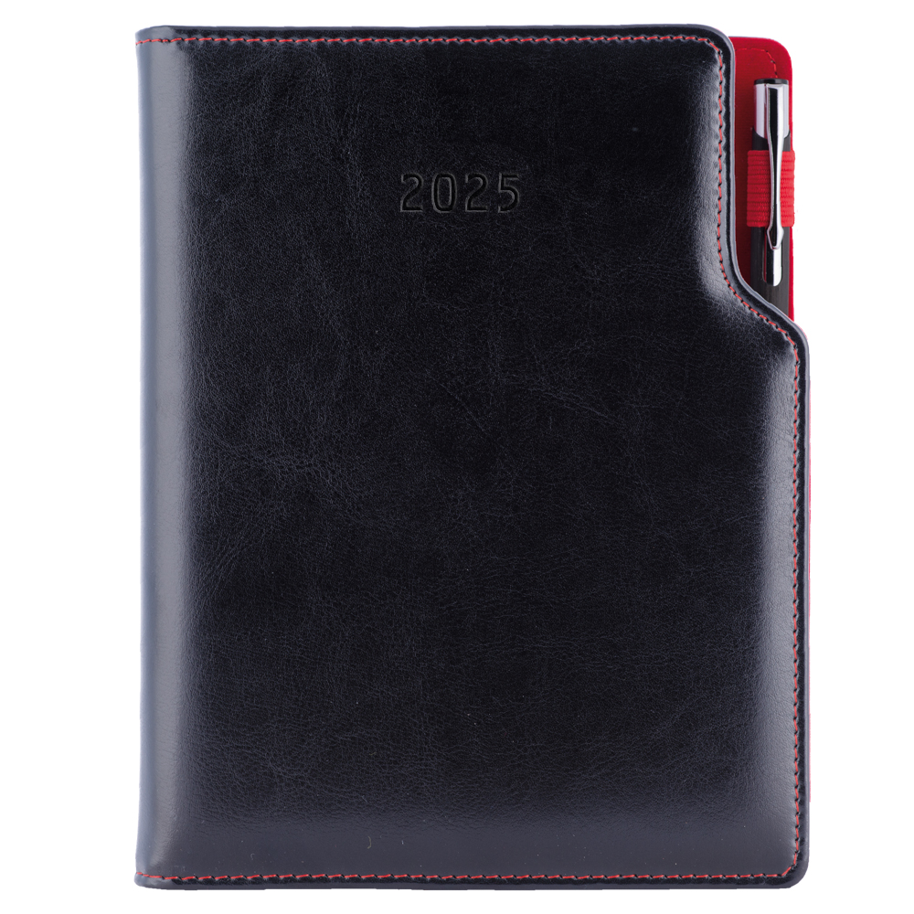 Diár GEP s perom denný B6 2025 polský - čierna, červené vnútro