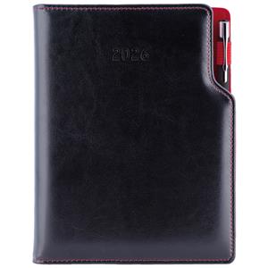 Diár GEP s perom denný B6 2026 - čierna/červené vnútro