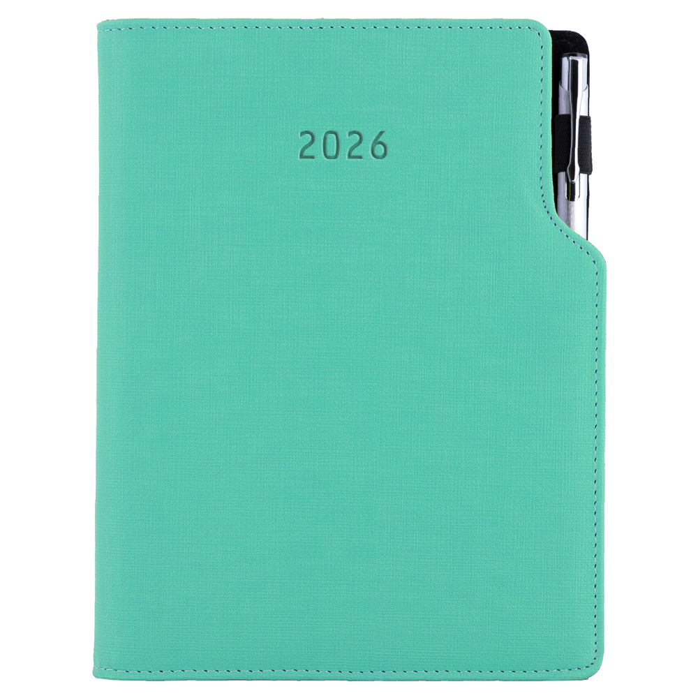 Diár obsahuje: krúhle odtrhávacie rožky, bielu záložku a pero