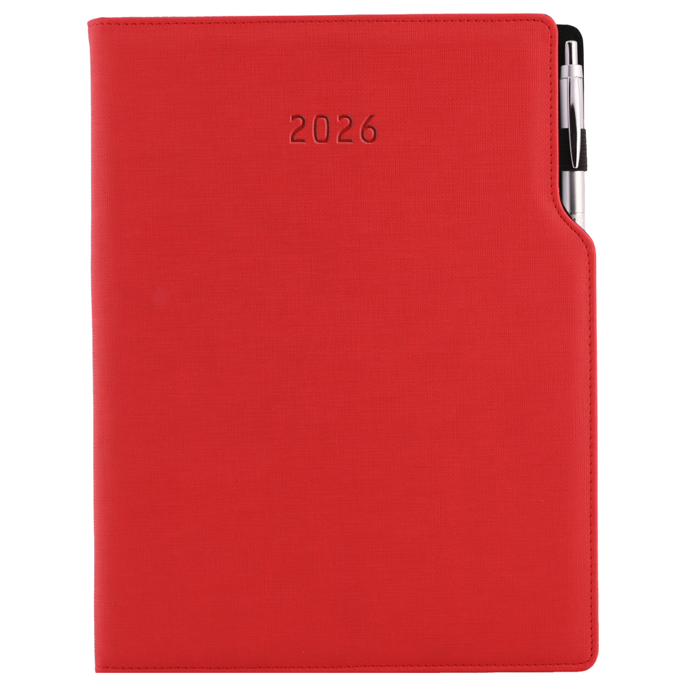 Diár GEP s perom týždenný A4 2026 polský - červená pastelová
