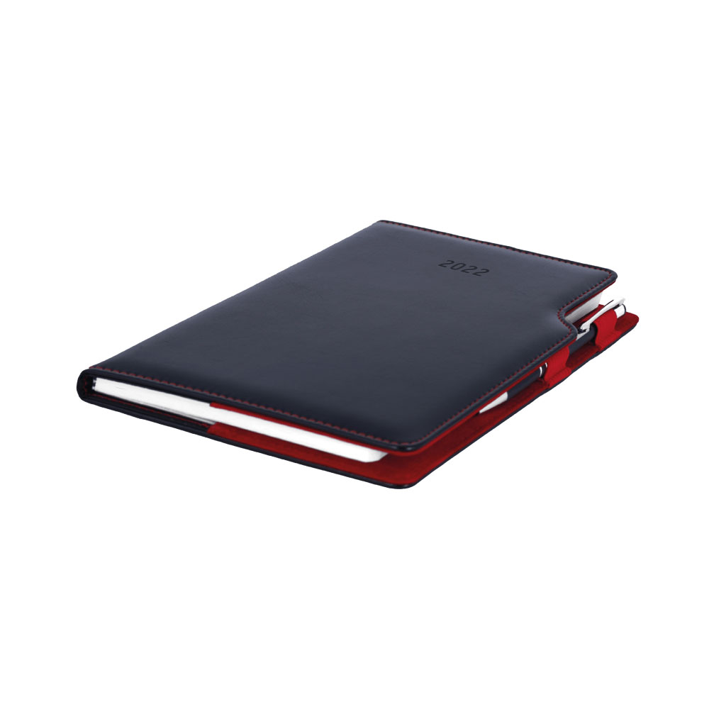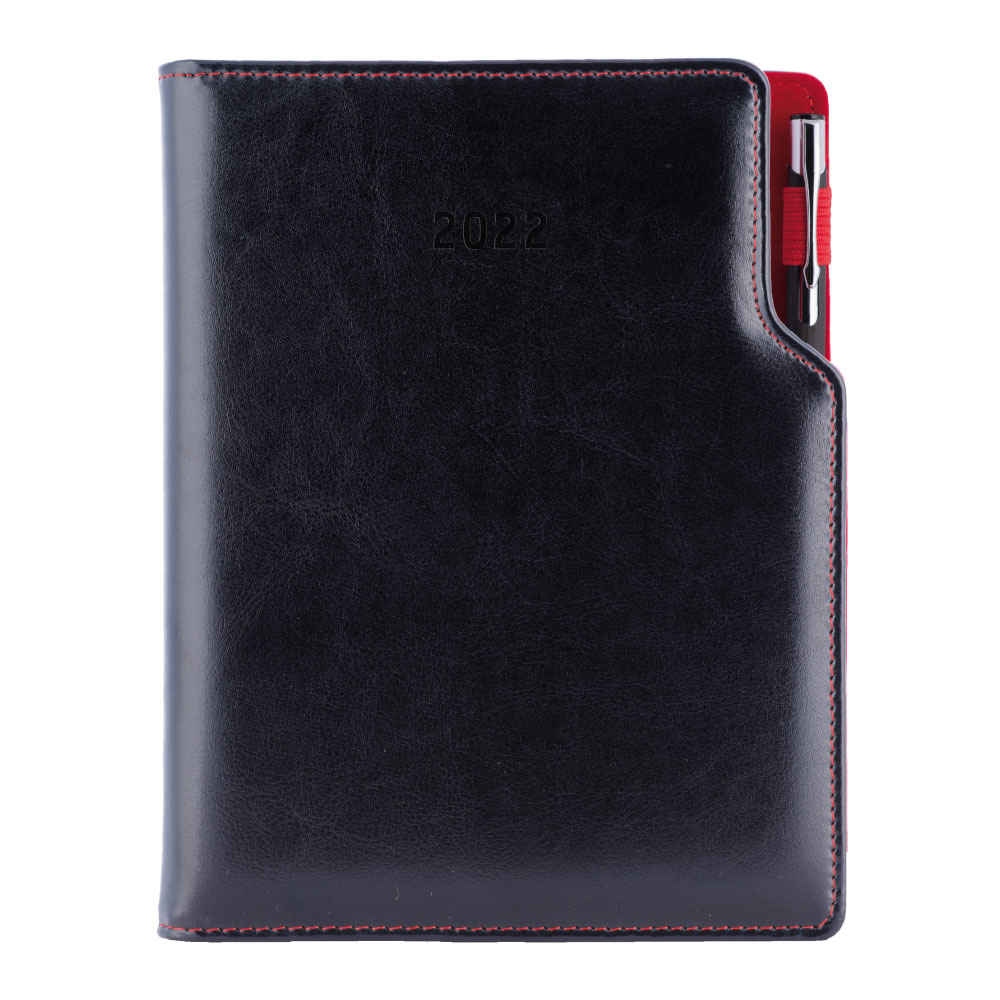 Diár GEP s perom týždenný A5 2022 polský - čierna, červené vnútro