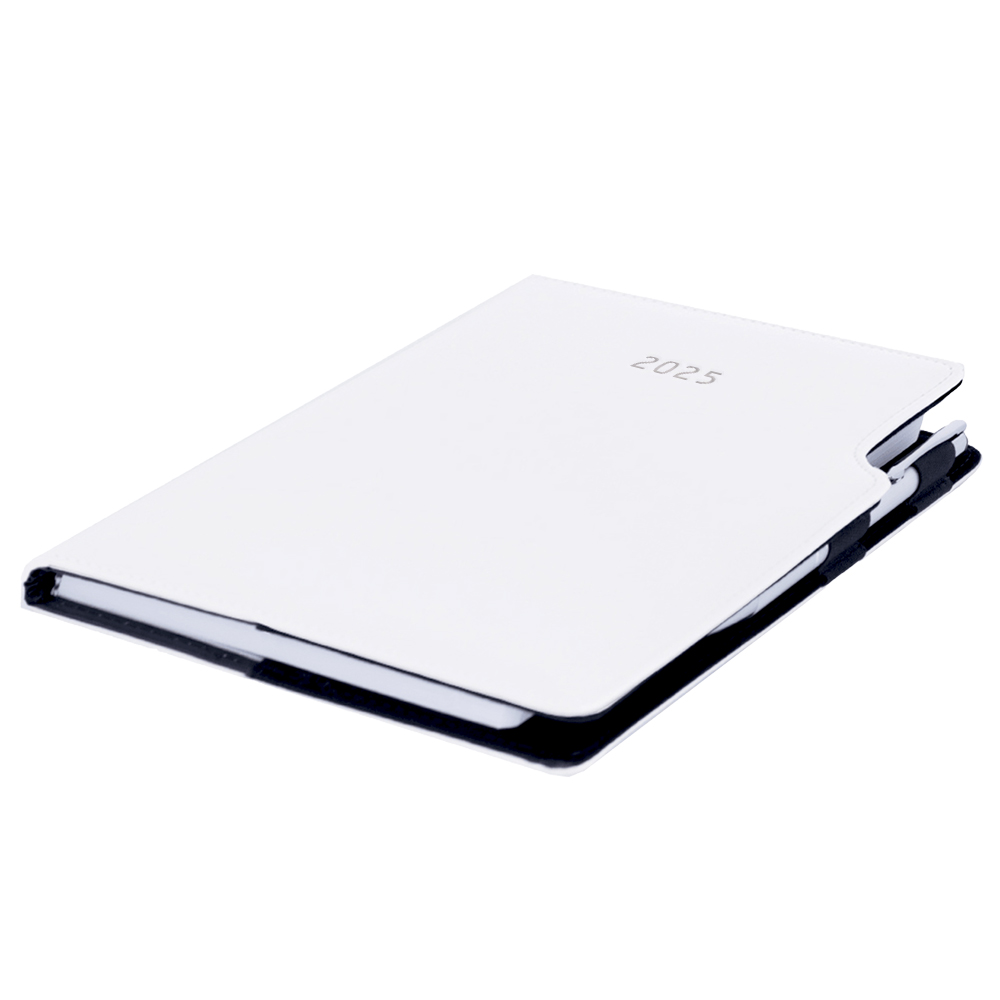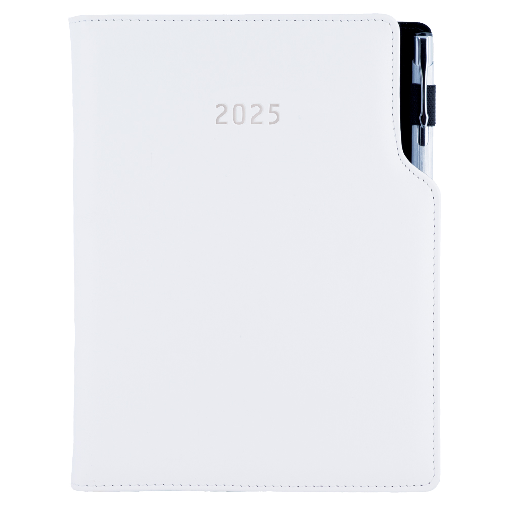 Diár GEP s perom týždenný A5 2025 polský - biela, biele obšitie