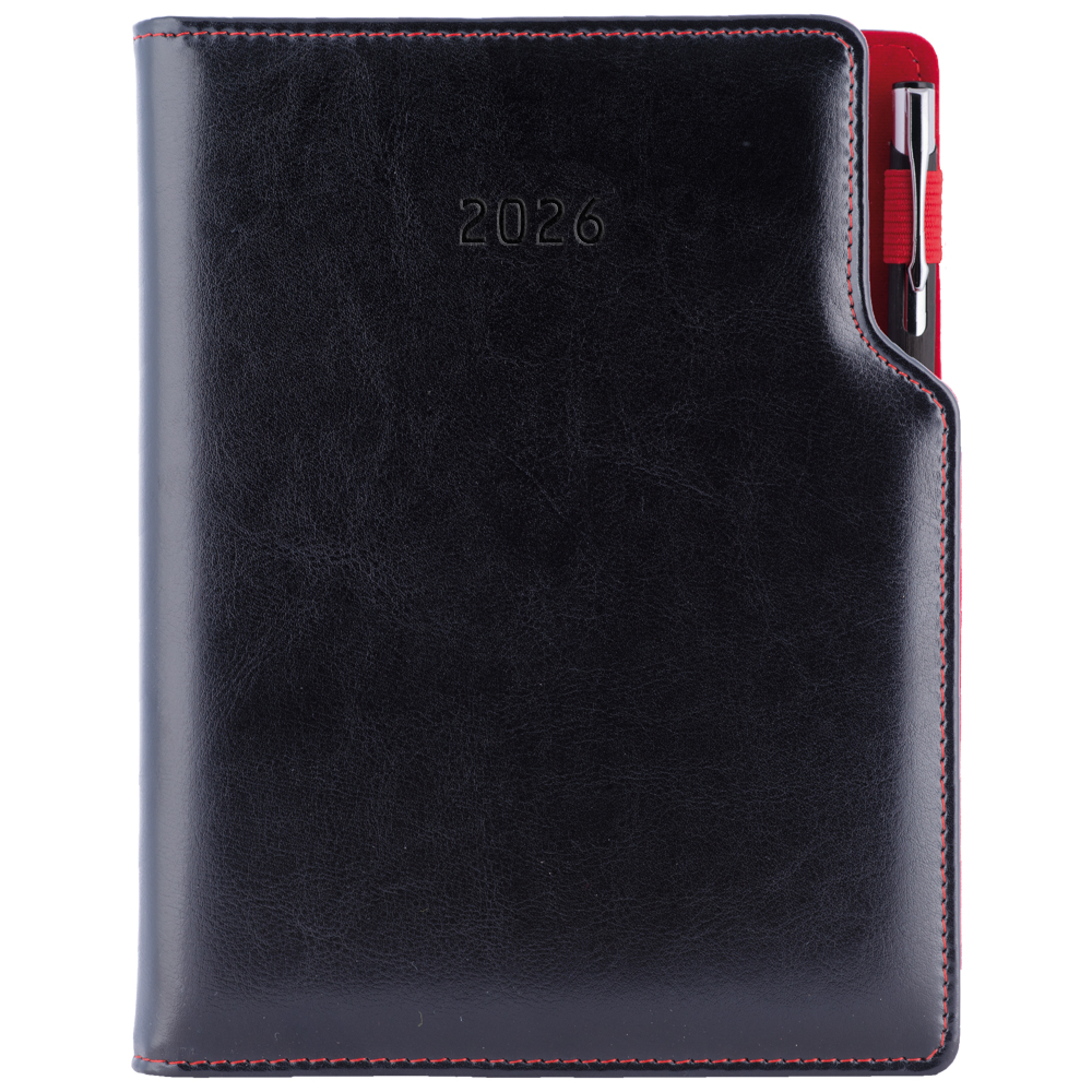Diár GEP s perom týždenný A5 2026 - čierna/červené vnútro