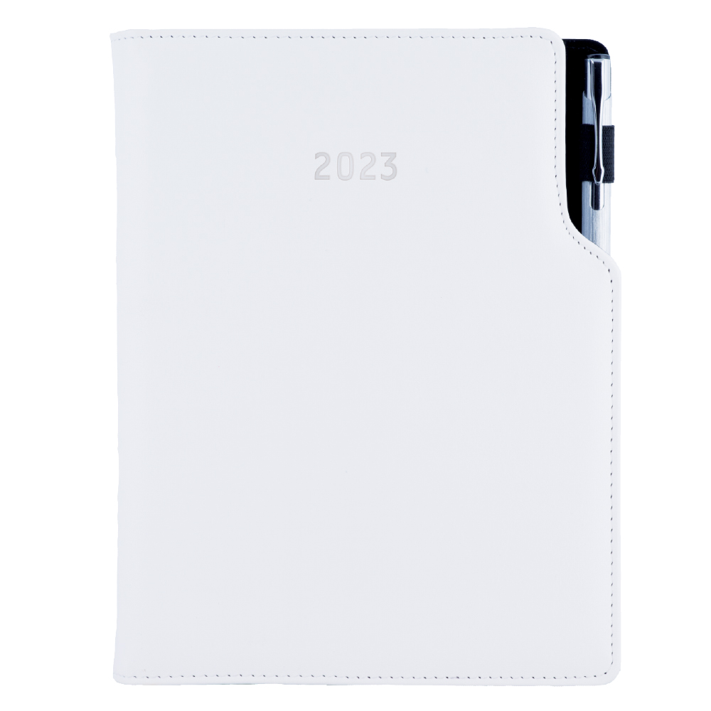 Diár GEP s perom týždenný B5 2023 polský - biela/ biele obšitie