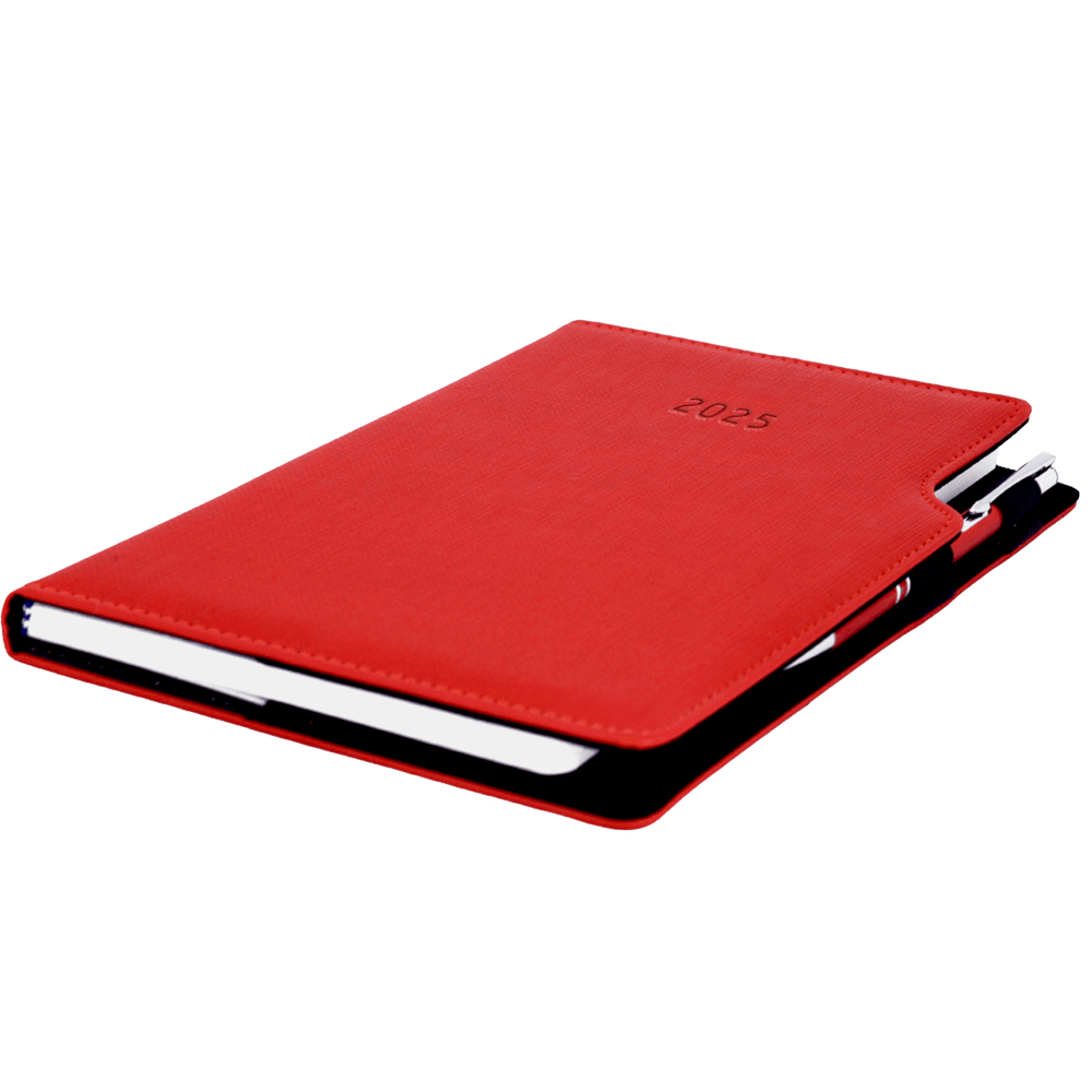 Diár GEP s perom týždenný B5 2025 polský - červená pastelová
