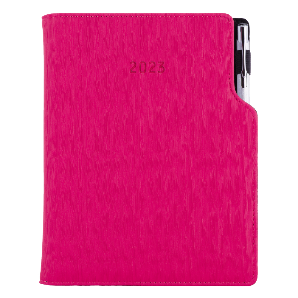 Diár obsahuje: okrúhle odtrhávcie rožky, bielu záložku a pero