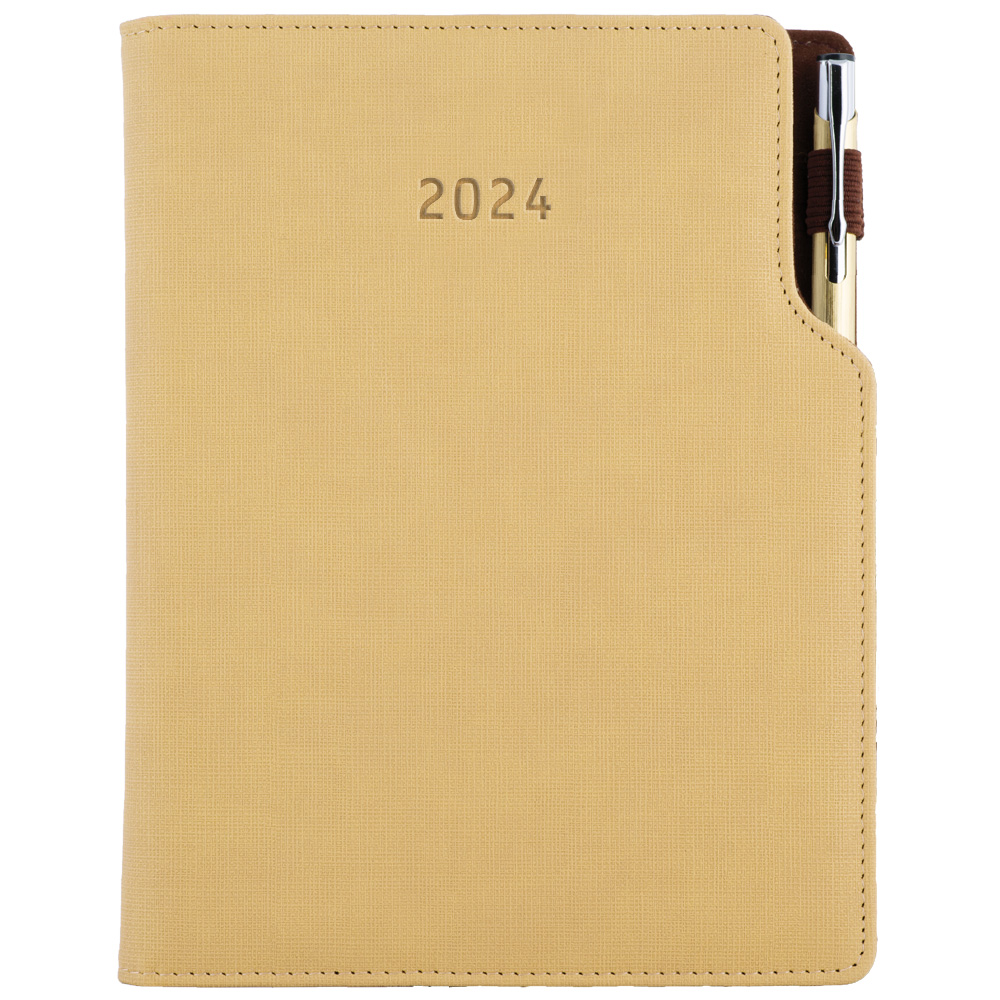 Diár GEP s perom týždenný špeciál A5 2024 - béžová/hnedé vnútro
