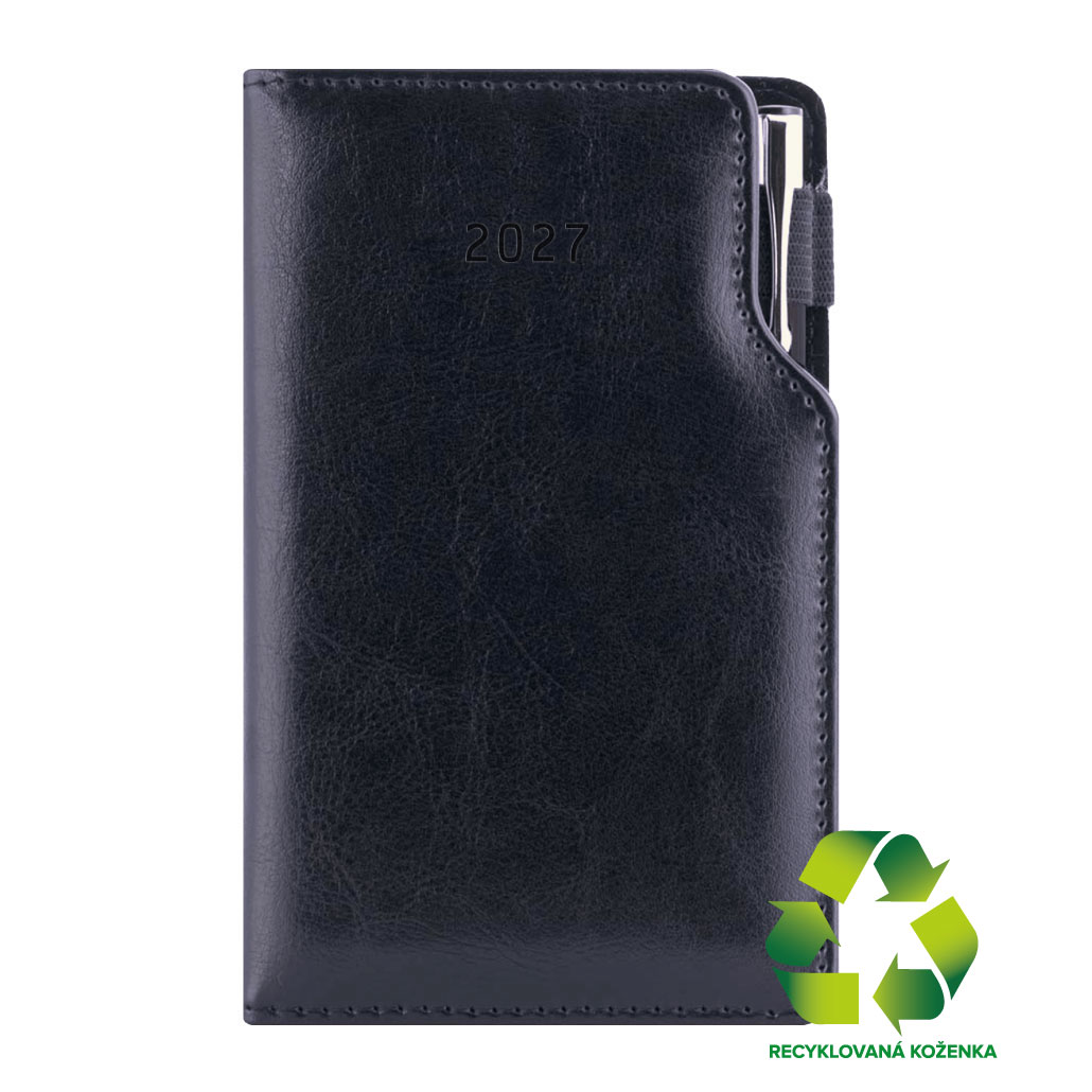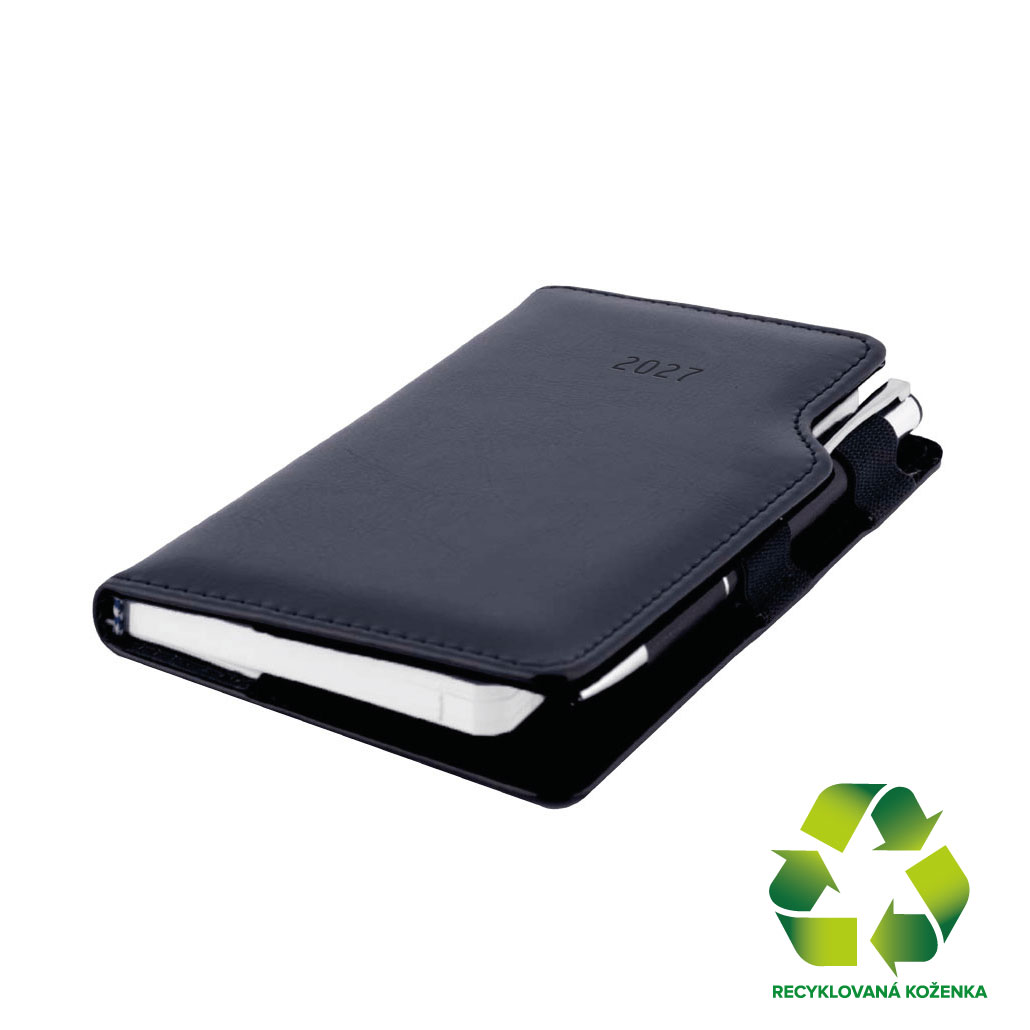 Diár GEP s perom týždenný vreckový 2027 slovenský - čierna/čierne vnútro - recyklovaná koženka