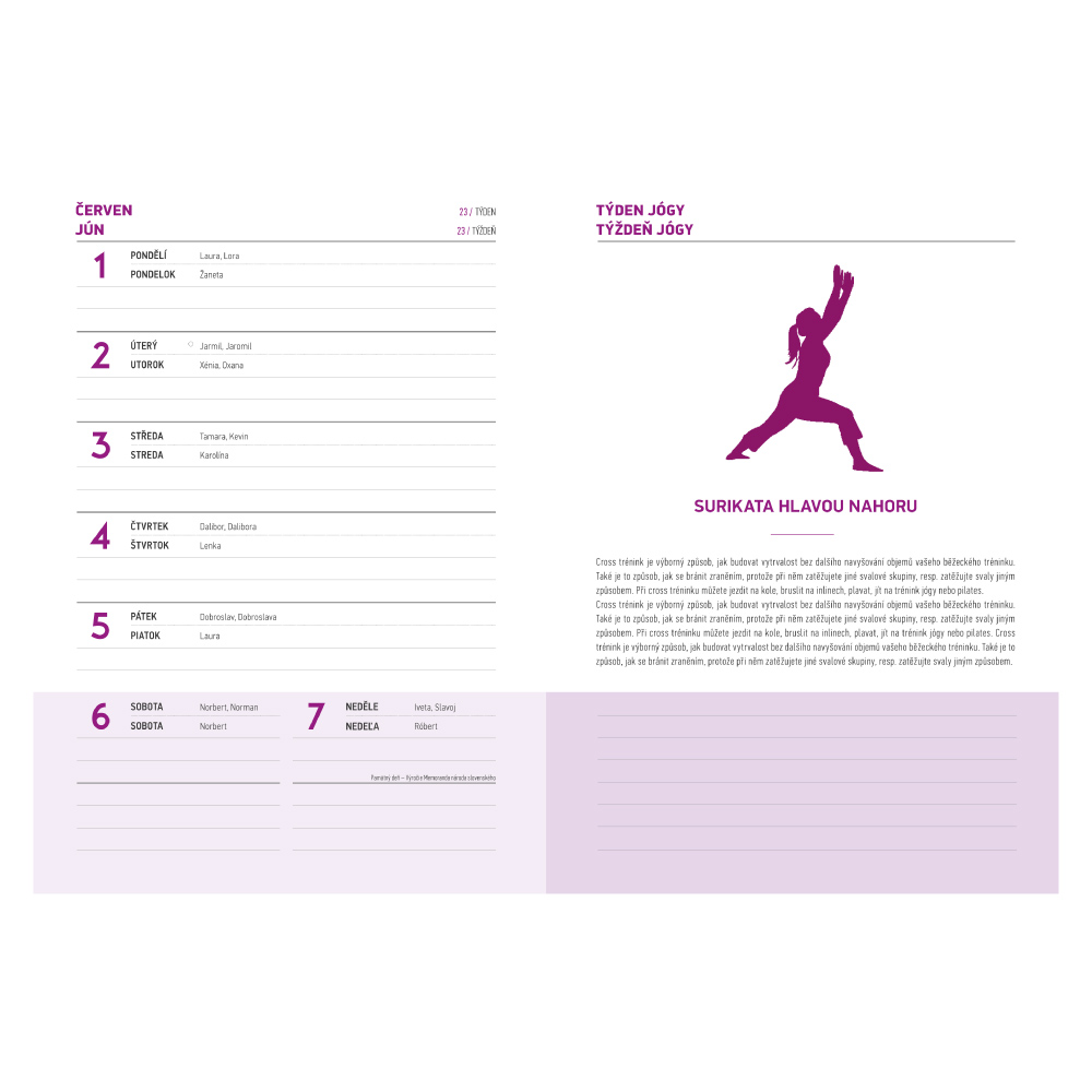 Súčasťou diára - 54 jogínskými pozícií názorne popsaných a znázornených.