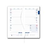 Formát: vreckový Rozmer bloku: 80 x 150 mm Rozsah: 144 strán Väzba: šitá V8 (tkaná niť) Kalendarium: týždenné poľskej Jazykové mutácie: PL, EN, DE, RU Farba bloku: biela Farba písma: modrá a červená Diár obsahuje: okrúhle odtrhávacie rožky, bie