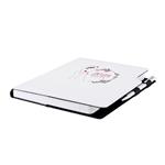 Diár obsahuje: okrúhle odtrhávacie rožky, bielu záložku a pero