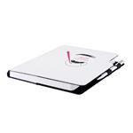 Diár obsahuje: okrúhle odtrhávcie rožky, bielu záložku a pero