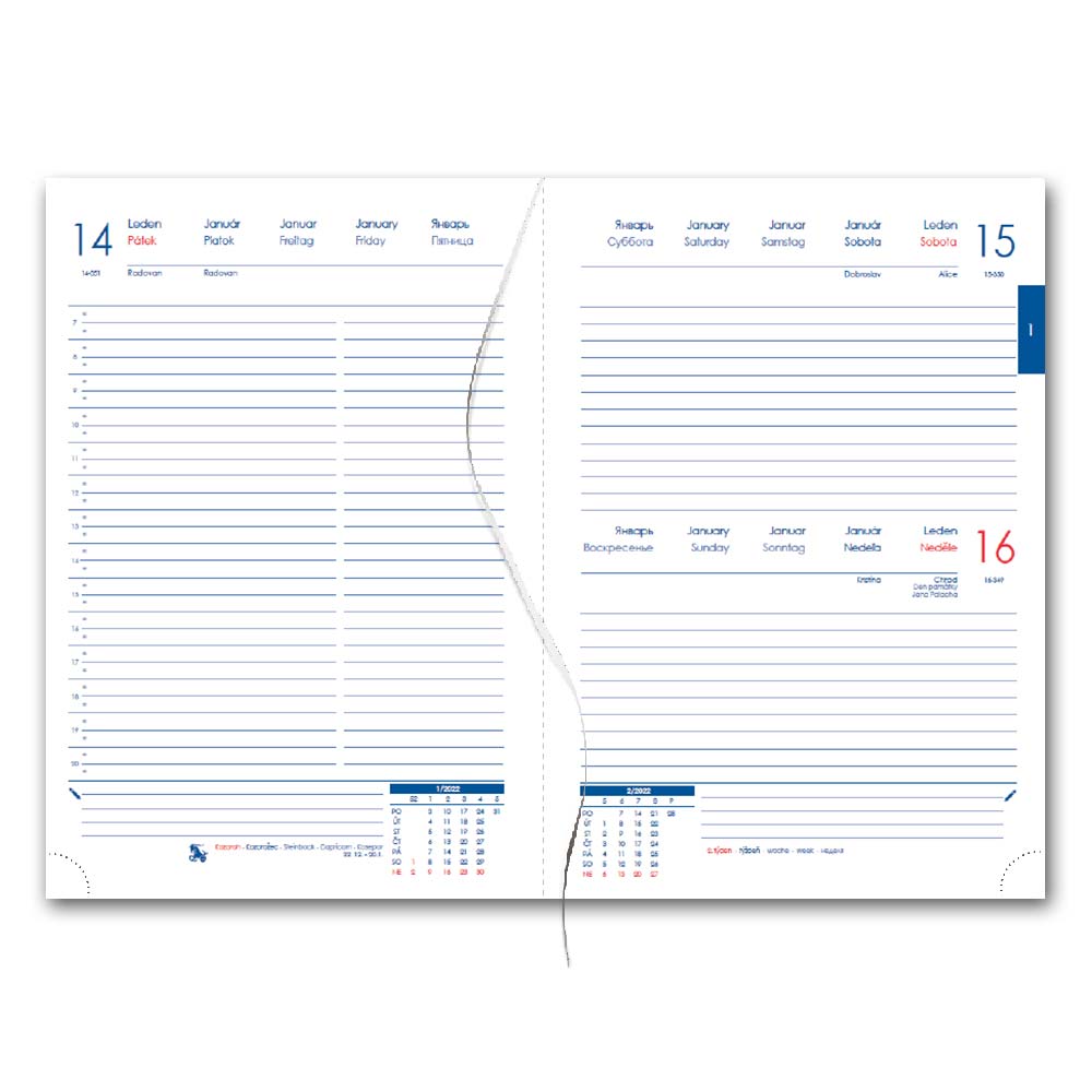 Diár obsahuje: okrúhle odtrhávacie rožky a bielou záložku