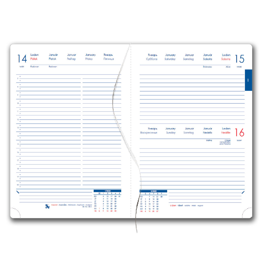 Diár je vhodný pre sleporazbu, farebnú razbu či potlač.