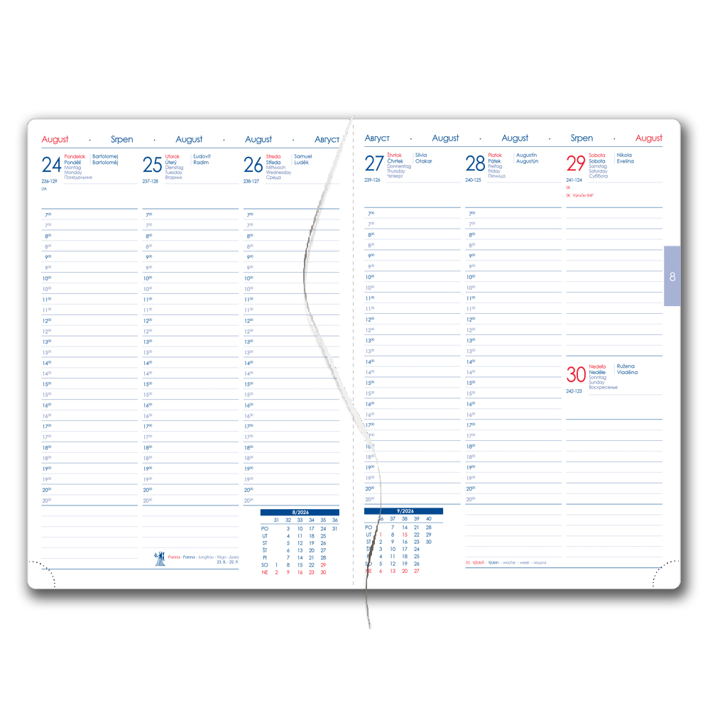Diár je vhodný pre sleporazbu, farebnú razbu či potlač.