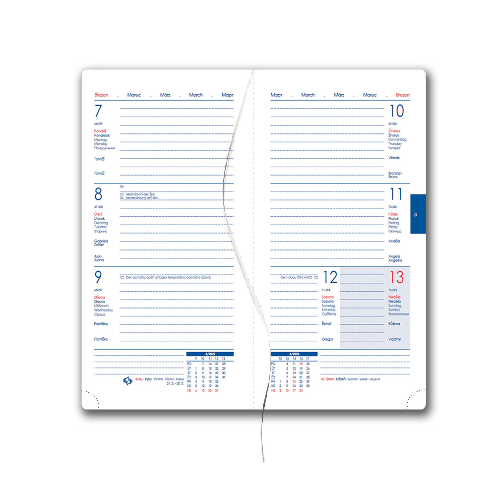 Diár MAGNETIC týždenný vreckový 2022 český - modrá/strieborná