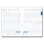 Formát: A5 Rozmer bloku: 143 x 206 mm Rozsah: 350 stran Väzba: šitá V8 (tkaná nit) Kalendárium: denné české menné Jazykové mutácie: CZ, SK, EN, DE, RU Farba bloku: biela Farba písma: modrá a červená Diár obsahuje: okrúhle odtrhávacie rožky a bie