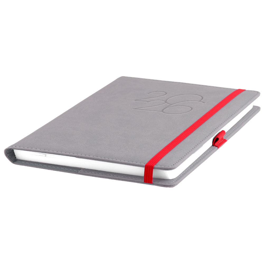 Diár POLY týždenný A5 2026 slovenský český - sivá/červená gumička