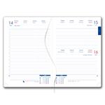 Diár obsahuje: okrúhle odtrhávacie rožky, bielu záložku,
