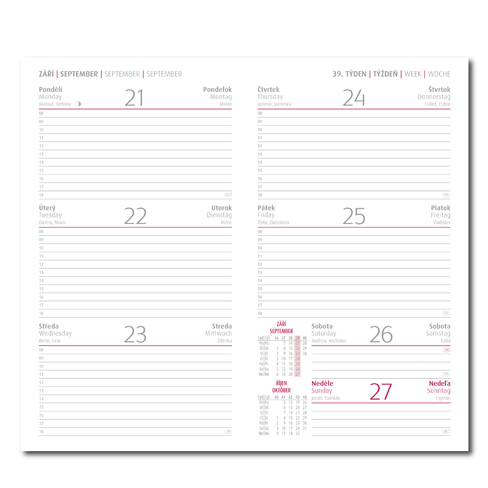 Diár Tucson-vivella týždenný vreckový 2016 - červená rozmer - 9 x 15,5 cm kalendárium - týždenné poťahový materiál - koženka počet strán - 136 papier - 60 g/m2 väzba - tuhá knižná záložka - ano, barva bloku - biela informačné stránky - 4 jazyčné kalend