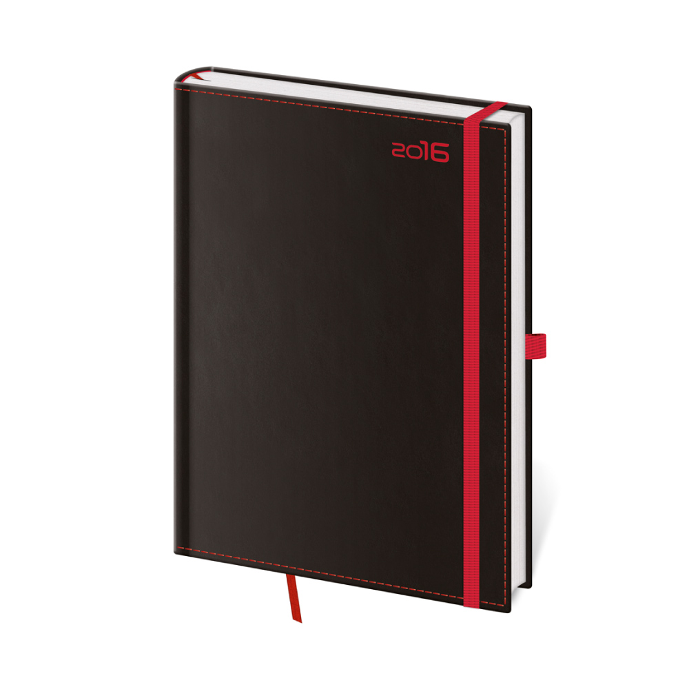 Diár týždenný 2016 A5 Black Red s pútkom na pero