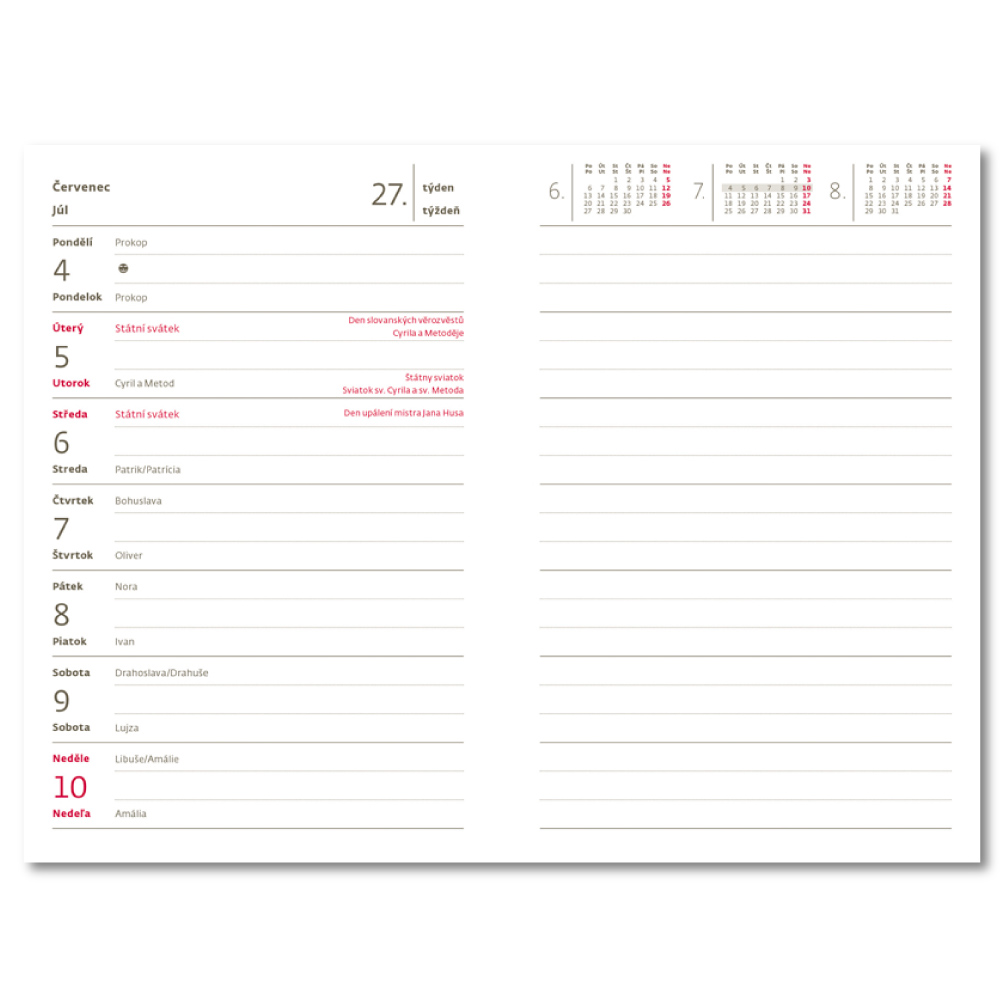 Kalendárium: týždenné české a slovenské menné