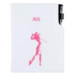 Formát: A5 Rozmer bloku: 143 x 205 mm Blok vkladaný do dosiek diára Rozsah: 354 stran Väzba: šitá V8 (tkaná nit) Kalendárium: denné slovenské menné Jazykové mutácie: SK, CZ, EN, DE, RU Farba bloku: biela Farba písma: modrá a červená Diár obsahuj