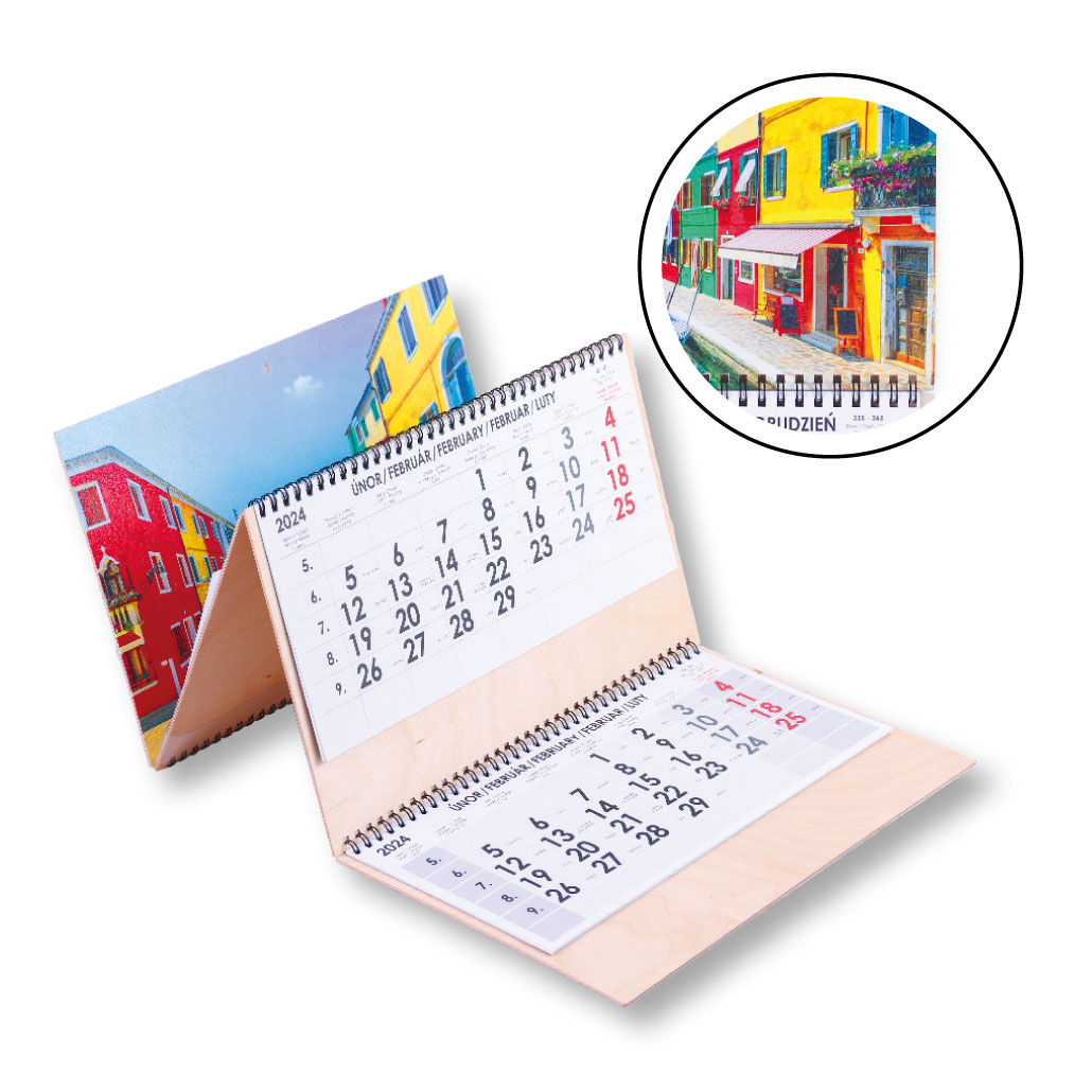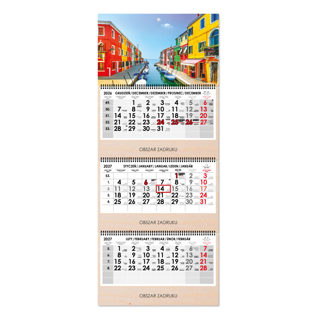 Drevený trojmesačný kalendár Trio Wood Benátky skládaný polský so špirálou 2027 - sivý