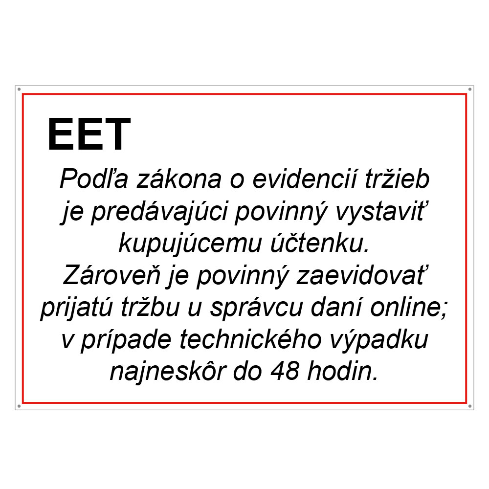 EET Elektronická evidencia tržieb - bezpečnostná tabuľka, plast s dierkami 2 mm, A4