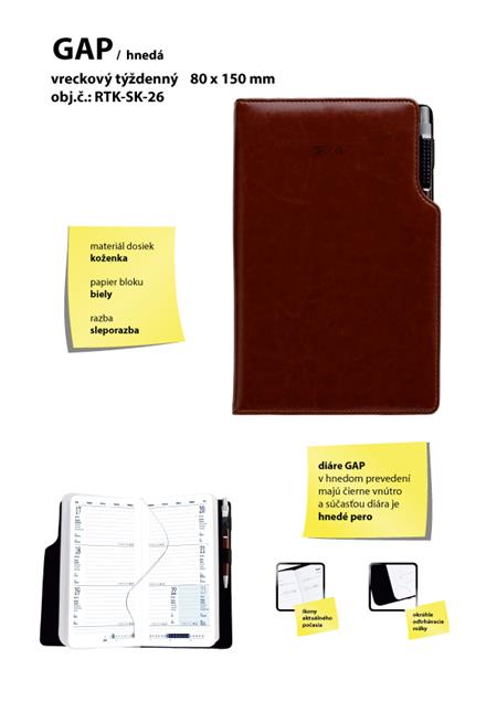 Gap kapesní slovenský diář 80x150 mm hnědá