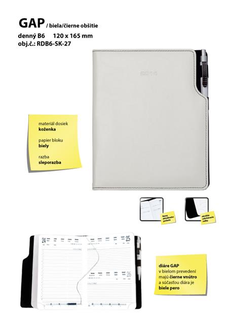 GEP slovenský denní diář B6 bílá - černé obšití