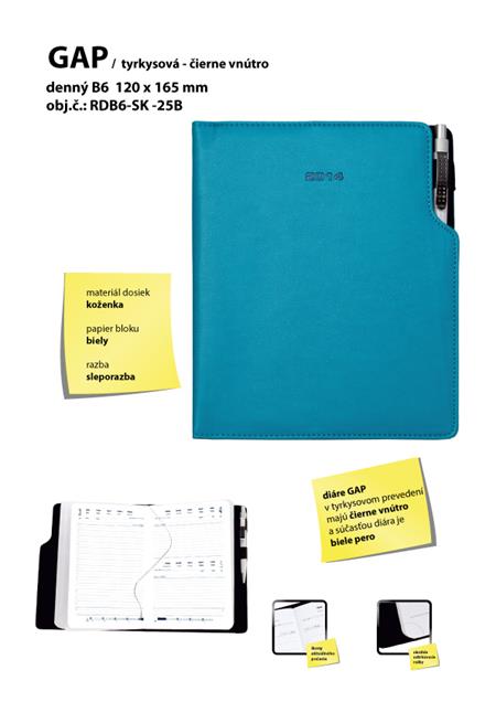 GEP slovenský denní diář B6 tyrkysová - černý vnitřek