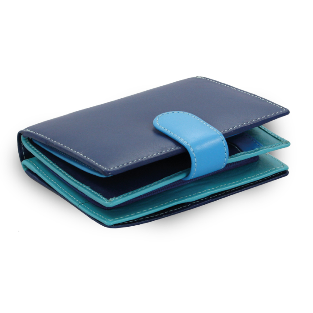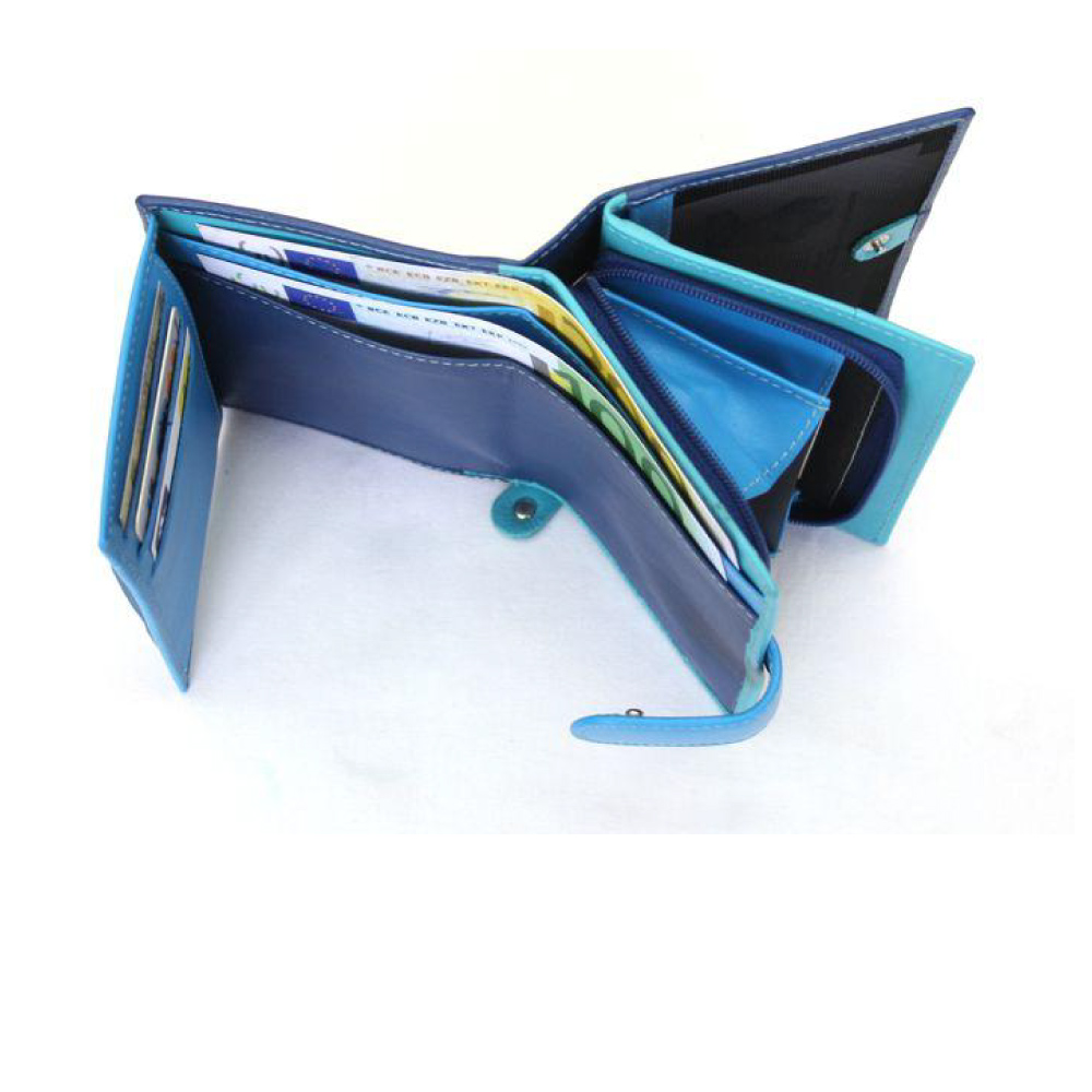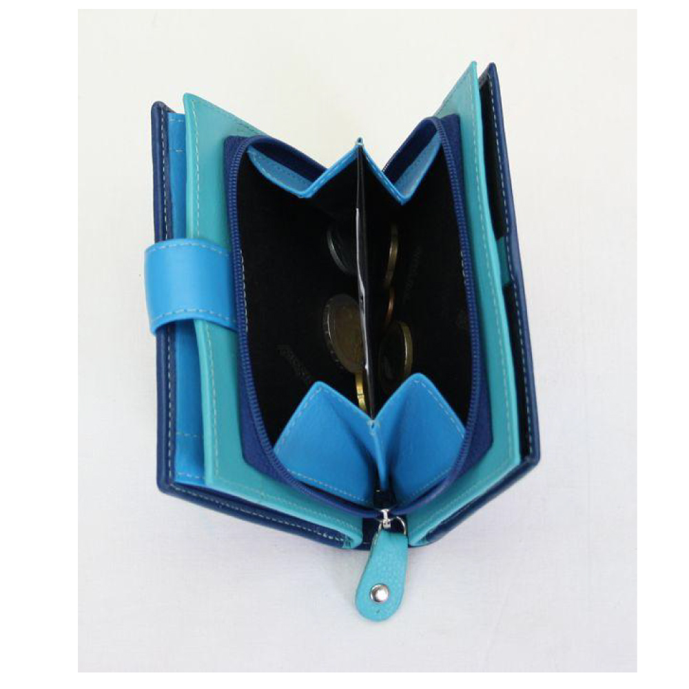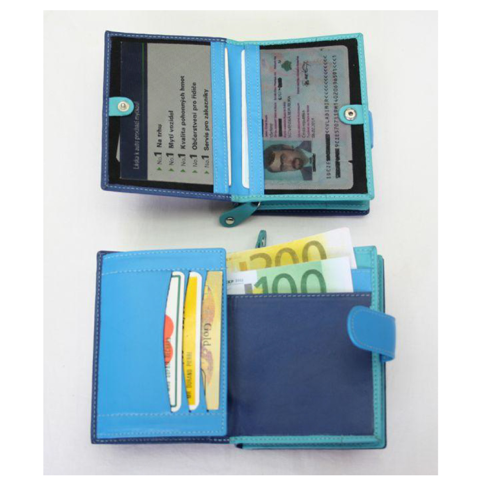 Modrá dámska kožená peňaženka so zápinkou