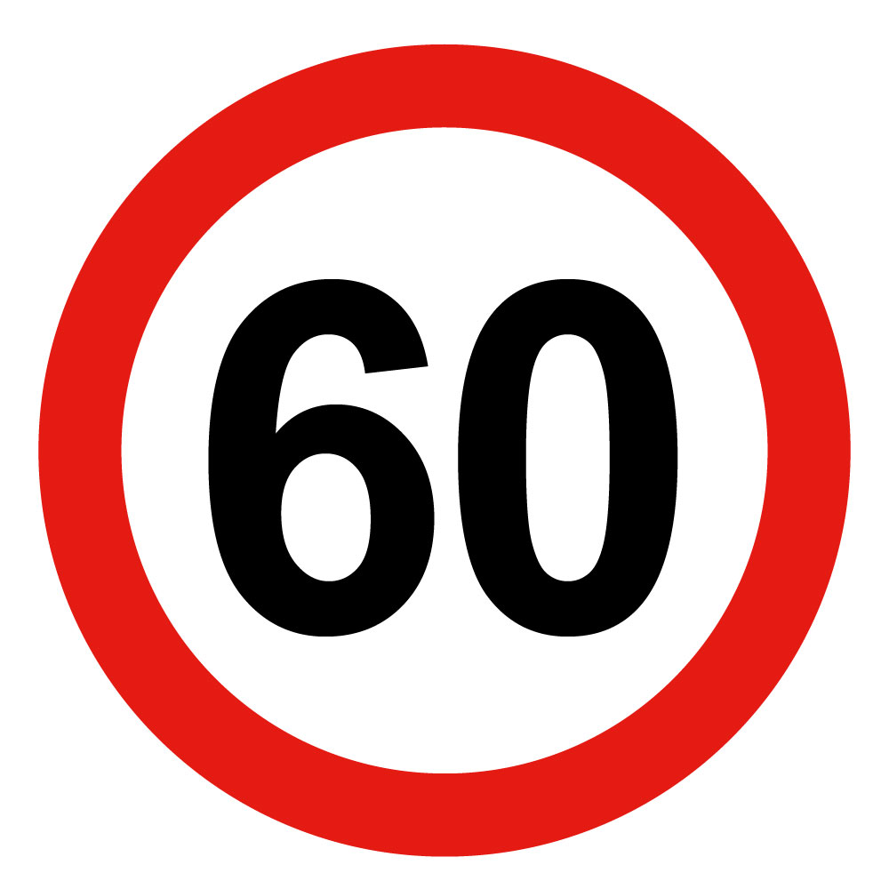Najvyššia obmedzená/konštrukčná rýchlosť vozidla 60 km, bezpečnostná tabuľka, plast 2 mm - kruh 10 cm