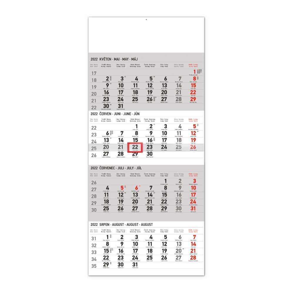 Nástenný kalendár 2022 4-mesačný štandard - sivý CZ