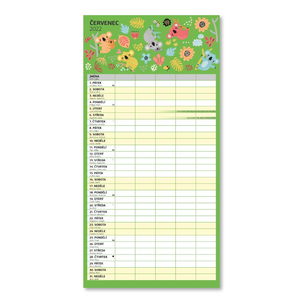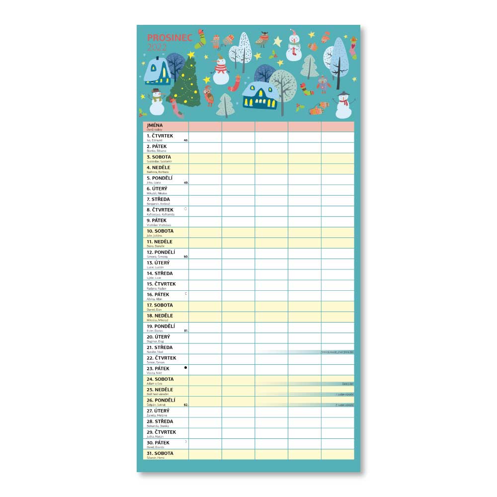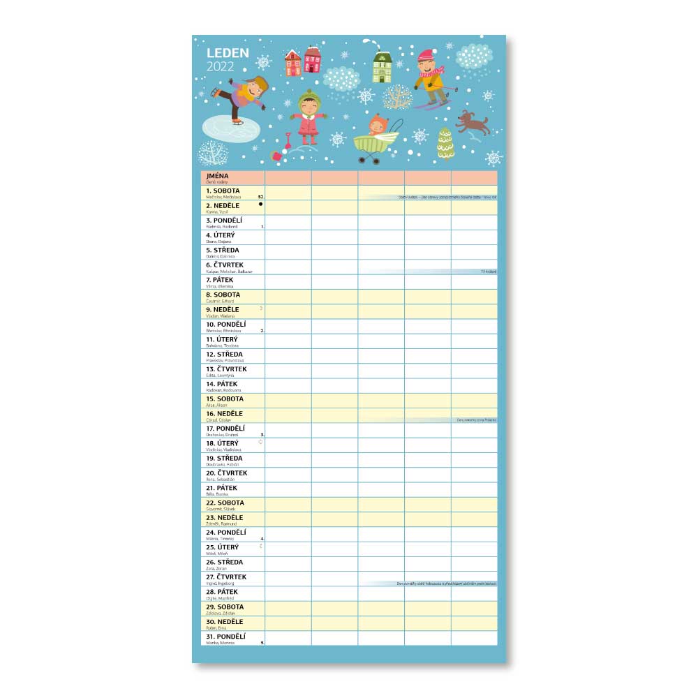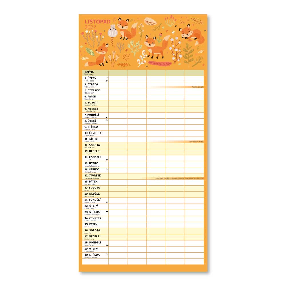 Rozmer: 30 x 30 cm (otvorený 30 x 60 cm)Kalendárium: českéRozsah kalendára: 14 stránVäzba: šitá V1