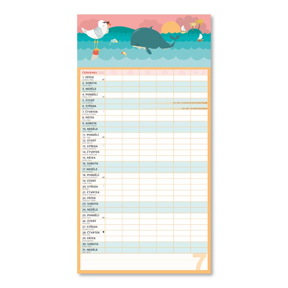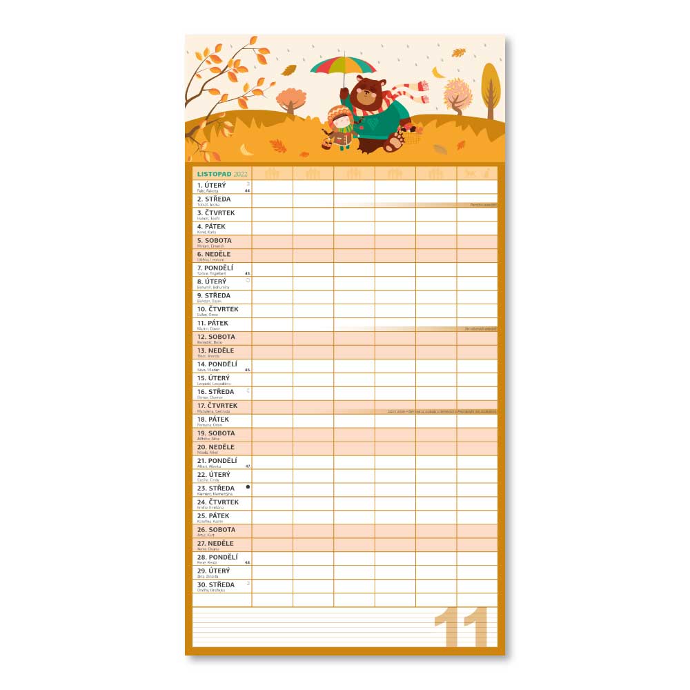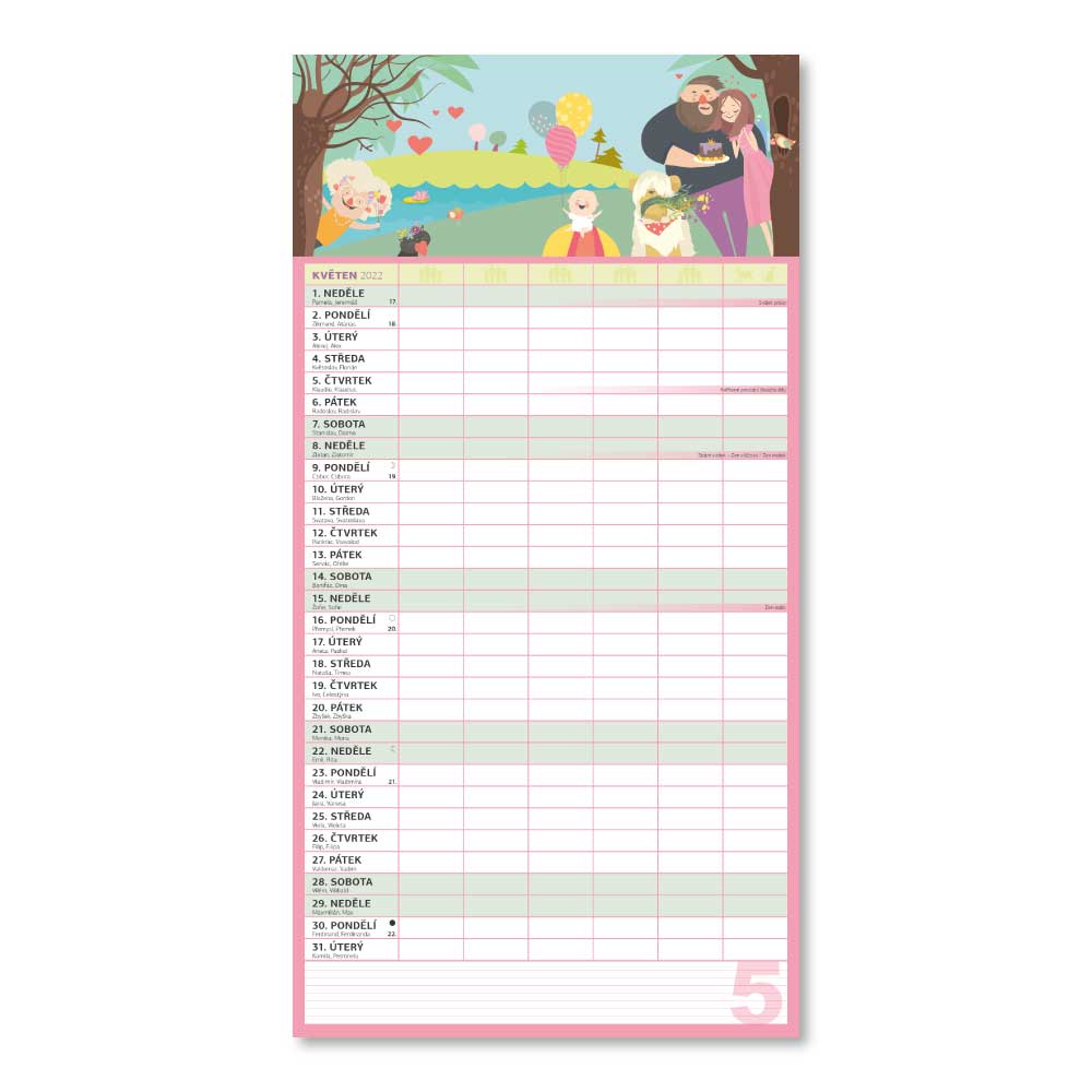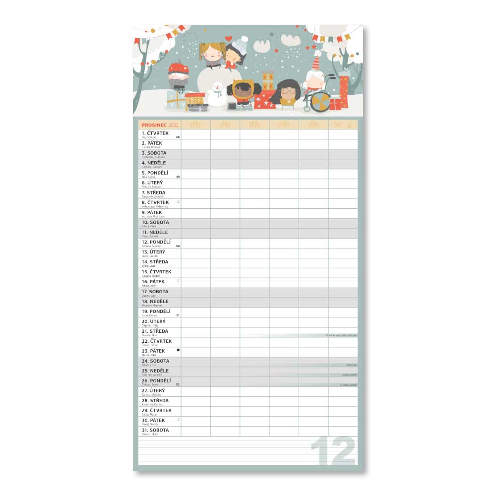 Rozmer: 33 x 64 cm Kalendárium: české Rozsah kalendára: 14 strán Väzba: dvojitá špirála