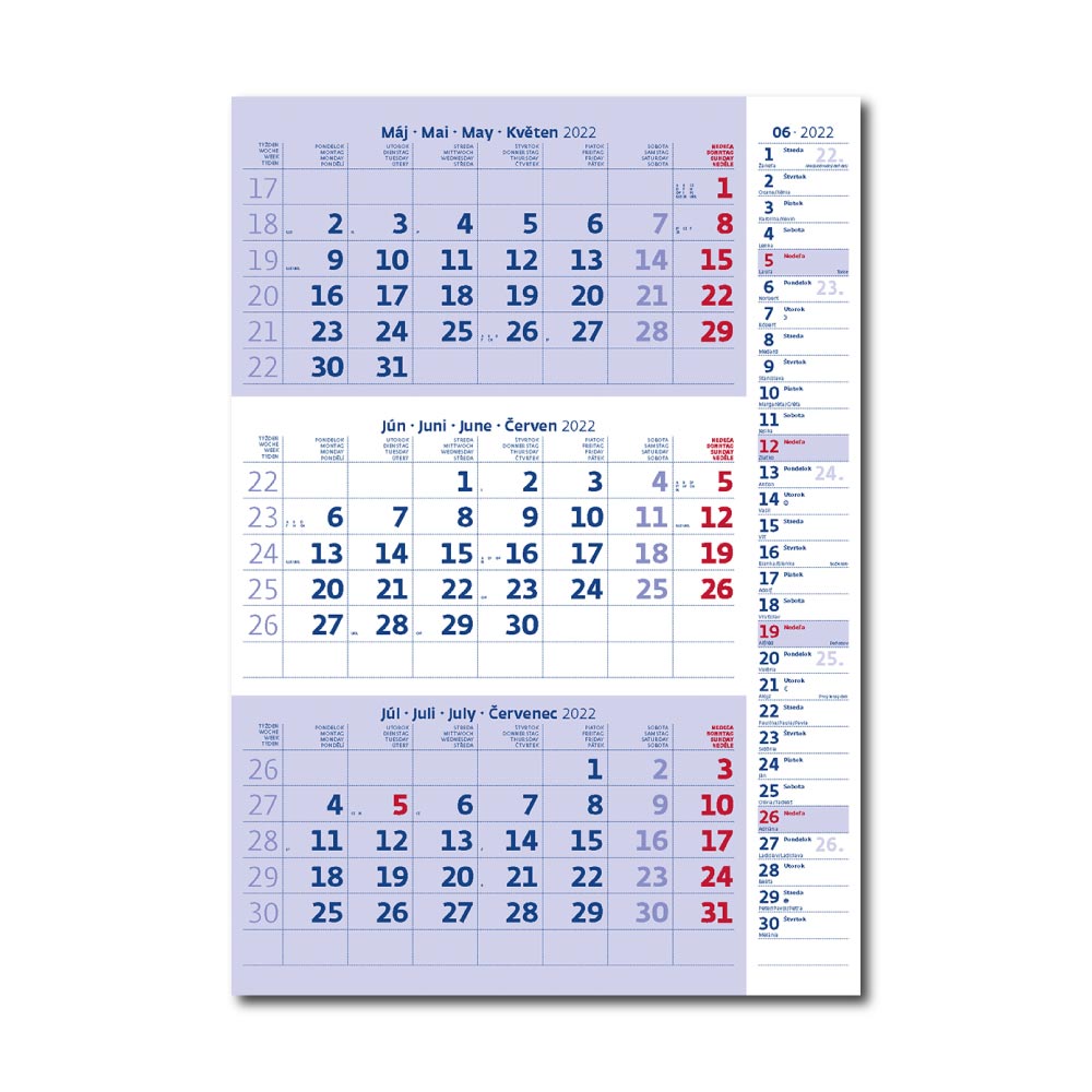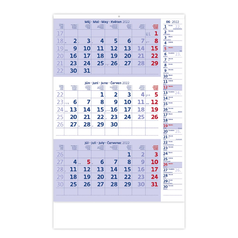 Nástenný kalendár 2022 Trojmesačný modrý s poznámkami
