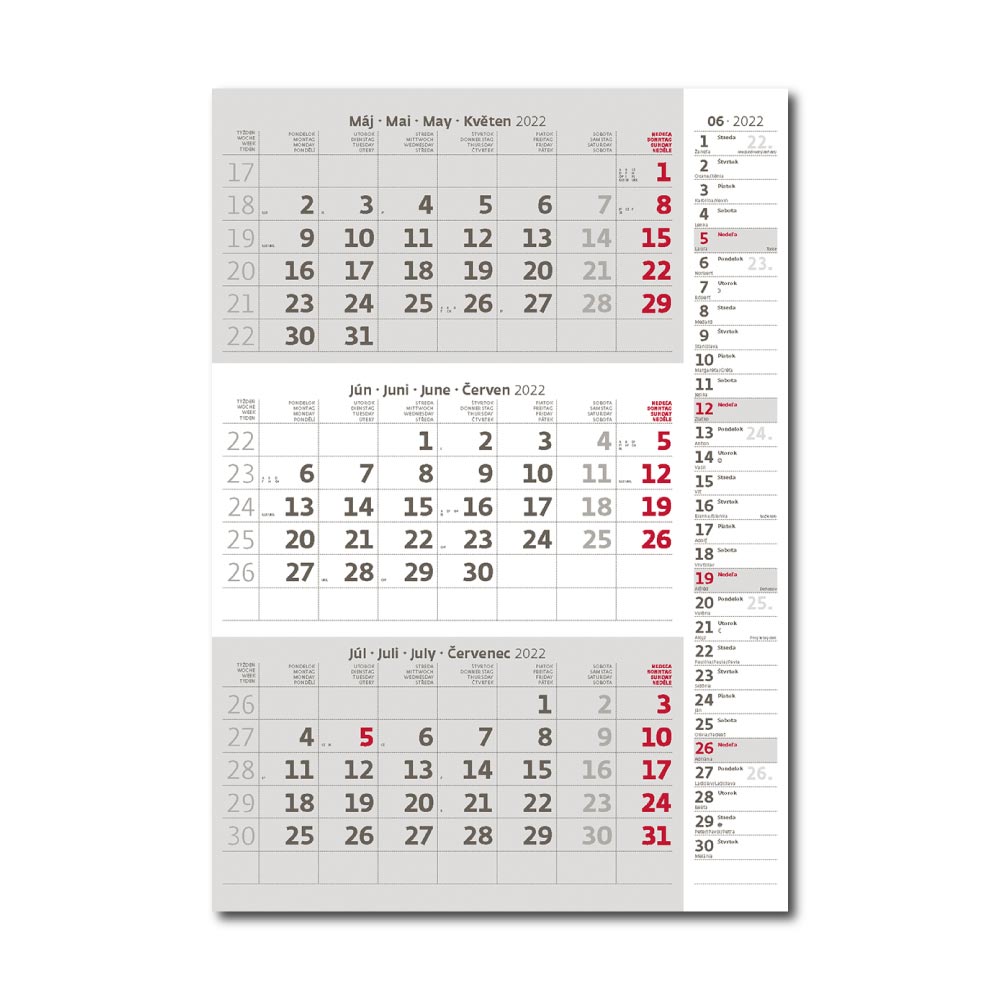 Nástenný kalendár 2022 Trojmesačný sivý s poznámkami