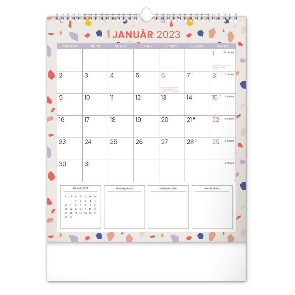 Nástenný kalendár 2023 plánovací kalendář Terazzo