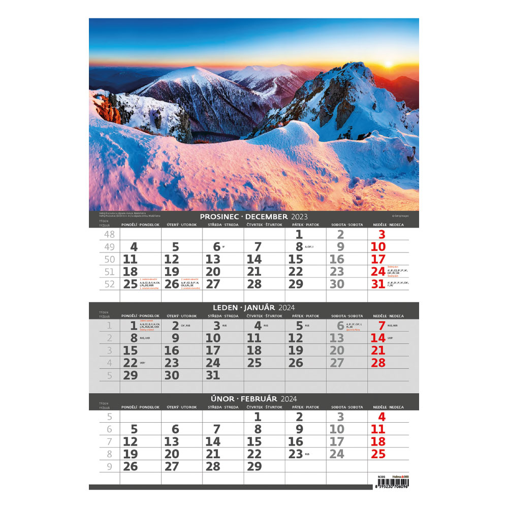 Nástěnný kalendář 2024 - Hory – 3měsíční/Hory – 3mesačnéRozmer: 31,5 x 45 cm