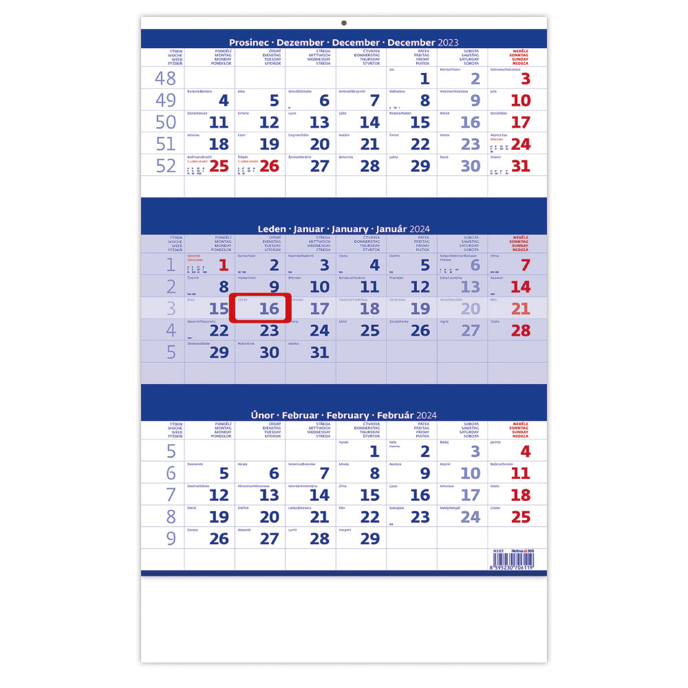 Nástěnný kalendář 2024 - Tříměsíční modrýRozmer: 31,5 x 45 cm